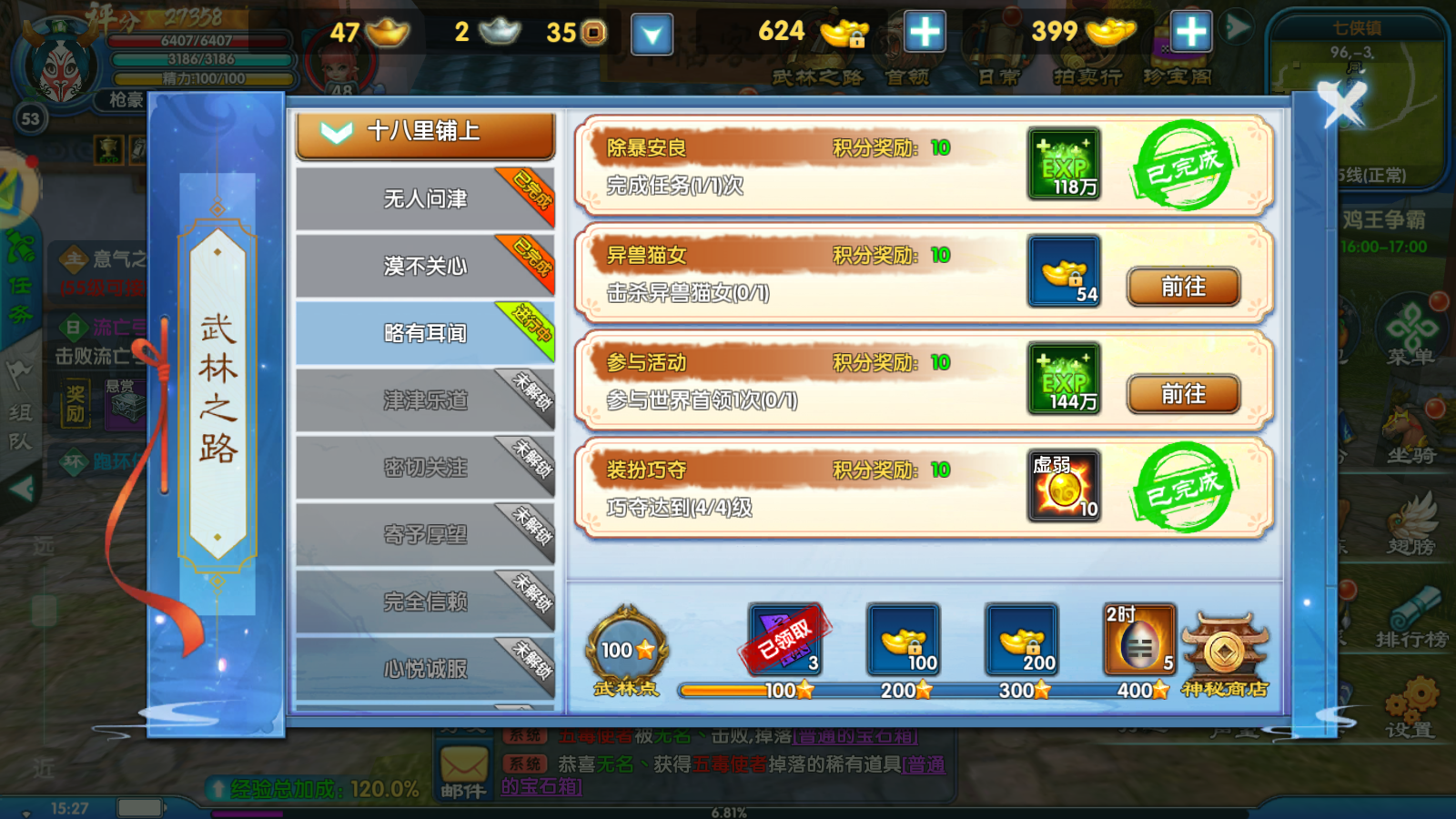 - 每日除暴安良先接再做其他任务,同步完成多拿奖励;