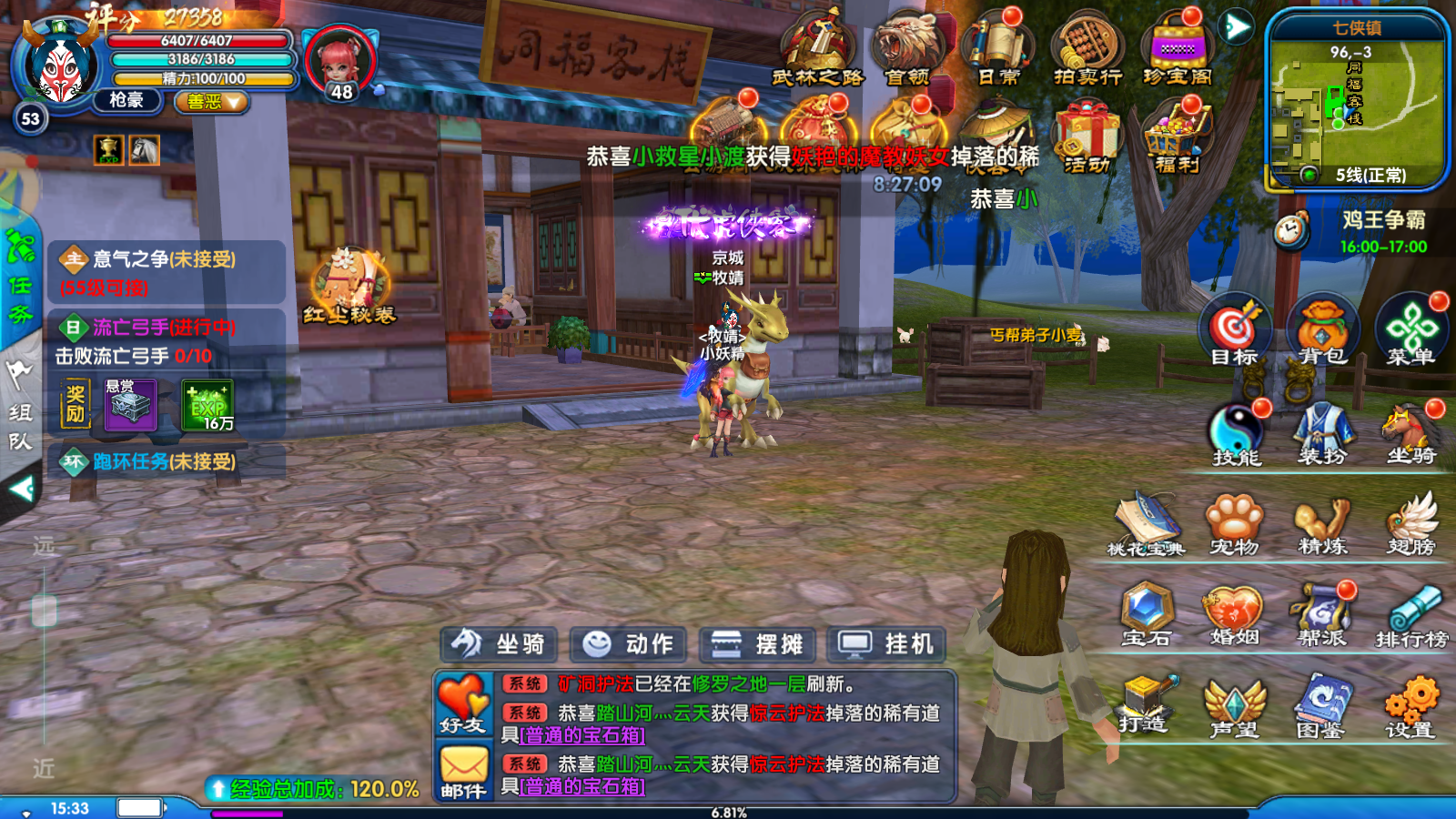 3. 多元玩法,休闲硬核通吃PVE 党可刷世界首领、鸡王争霸,拿完美精炼石和坐骑碎片;PVP 党激战大乱斗、帮派领土战,登顶全服获专属称号;社交党能结师徒、入帮派、办情缘婚礼,同福客栈组队打卡忆青春。还有梦境七侠镇安全挂机,碎片化时间也能轻松升级。