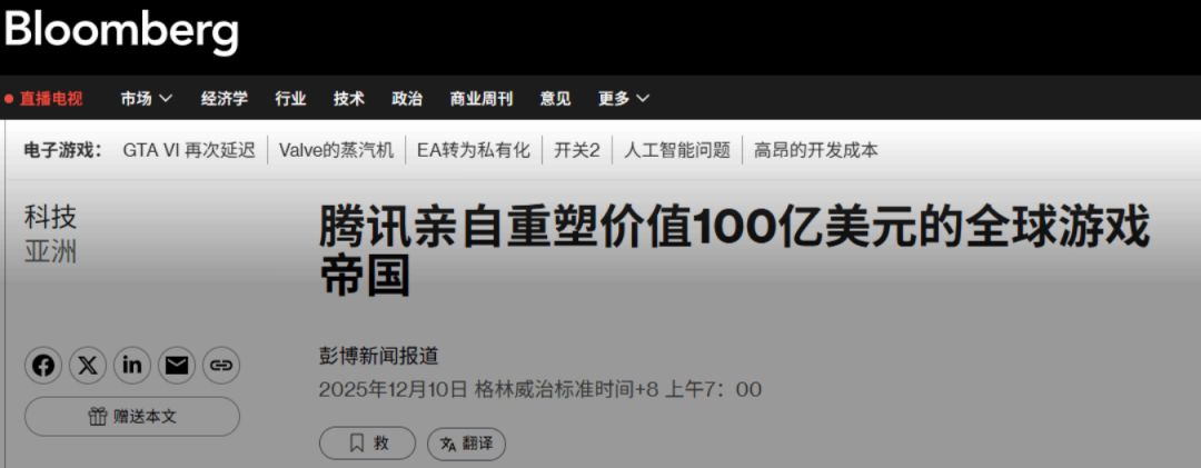 据彭博社报道,腾讯在海外市场的游戏收入已超越 EA、《Roblox》及《GTA》系列所属企业,在全球游戏行业树立起新标杆。腾讯的海外扩张策略备受关注 —— 其核心在于精准筛选潜力游戏工作室,提供资金支持的同时,普遍不干预团队自主运作。