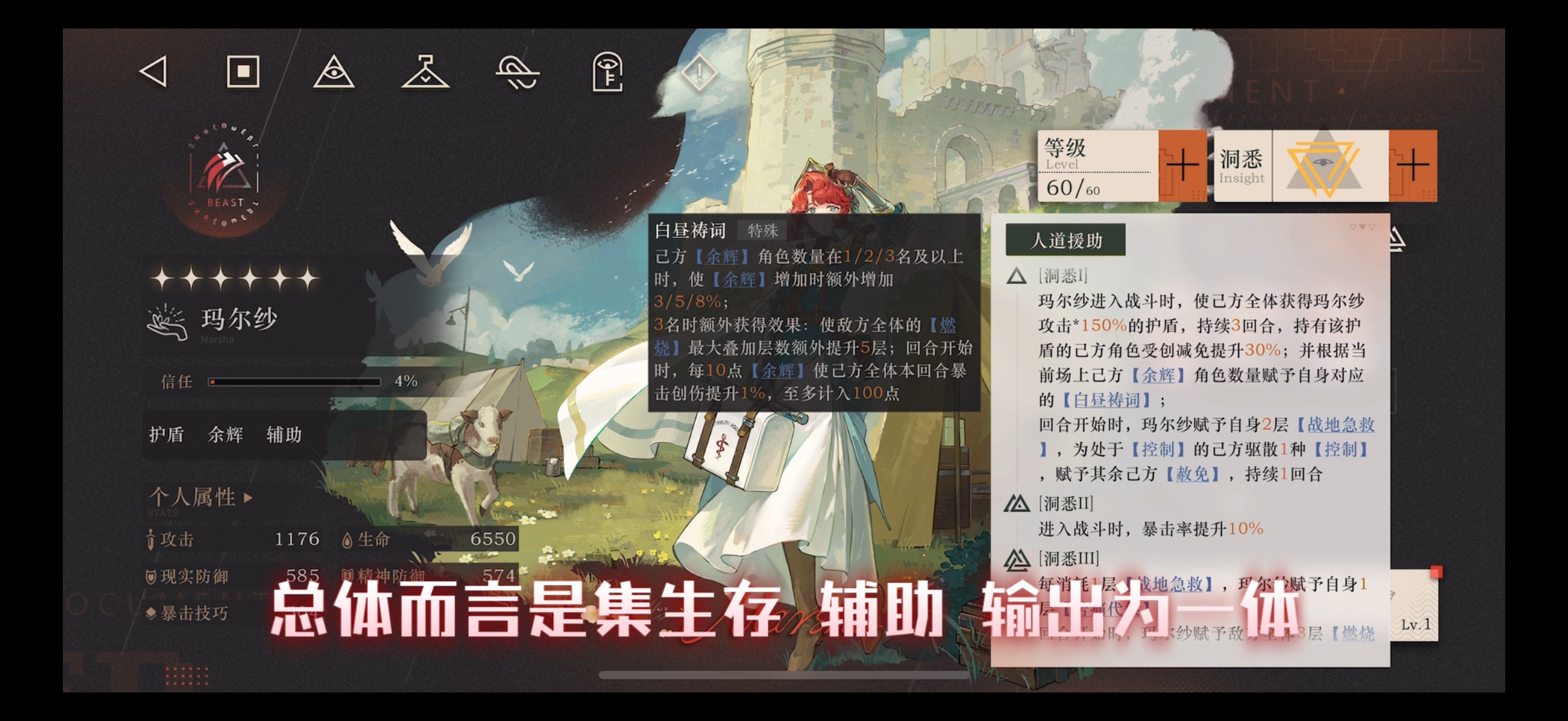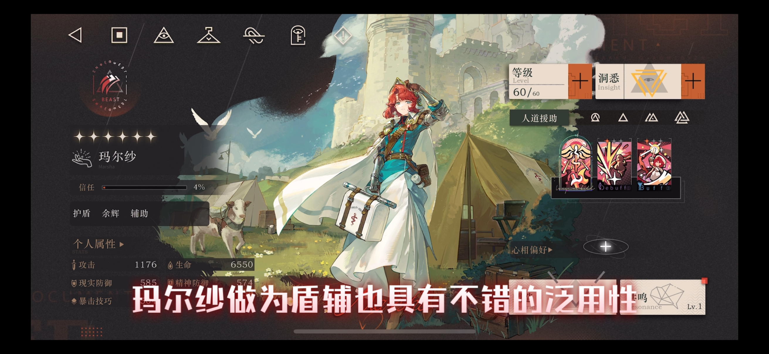 玛尔纱作为盾辅生存能力主要还是来自高减伤 只要有盾就有增益还是很不错的