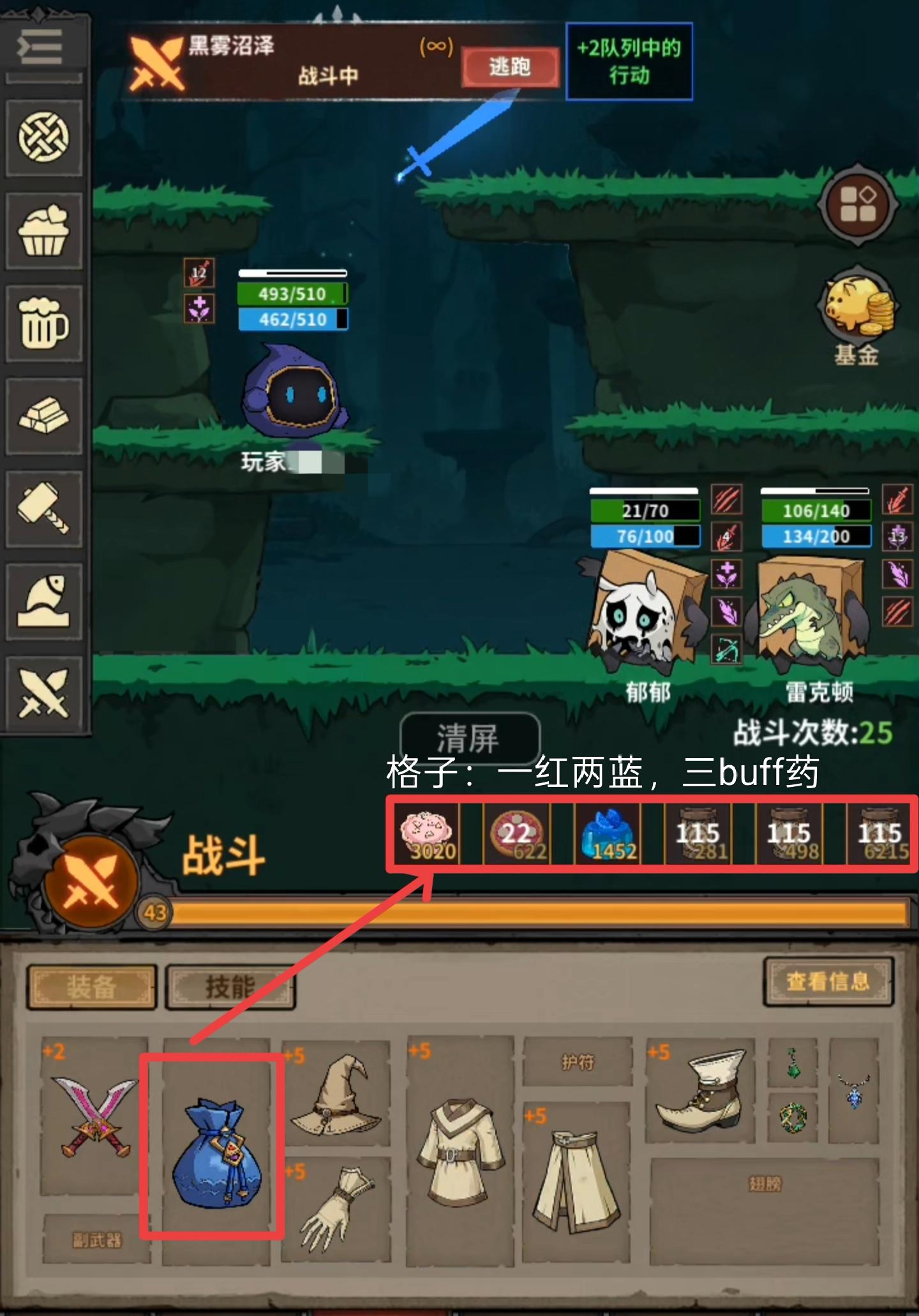 Buff推荐:经验,魔法1.0-3.0,敏捷佳酿或幸运佳酿