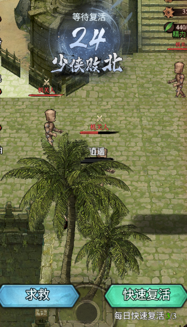 记住了,每天有3次快速的原地复活机会,算你走运,这是第一次。要是次数用光了,你就得躺这儿数60秒星星才能起来。哼,岛上的地板凉快吗?要是【求救】而且有人拉你,那就不消耗原地复活的次数,怎么样,要我拉你吗?