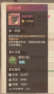 二、使用建议无忌无垢队:李善德使用道衍玄鹿,何秀姑使用衔莲灵狐。 魏征队:房玄龄使用道衍玄鹿(暴击率高的房玄龄效果更佳),李善德使用衔莲灵狐。三、获取与强化1、获取途径:通过天香游园活动购买绝代座驾礼包获得。 2、强化方式:需消耗灵芝、龙驹血精、真龙血精等道具进行觉醒和血脉升级,提升皮肤等级和属性效果。