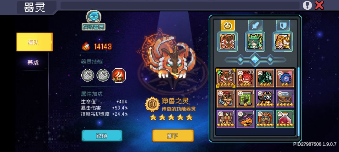 功能型器灵:狰兽之灵,赫拉提亚之灵、黑煞魔(打桩唯一真神,1星都可以)