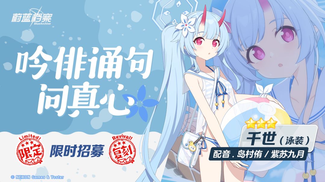 在本次招募中,3★限定成员“千世(泳装)”招募概率得到提升!