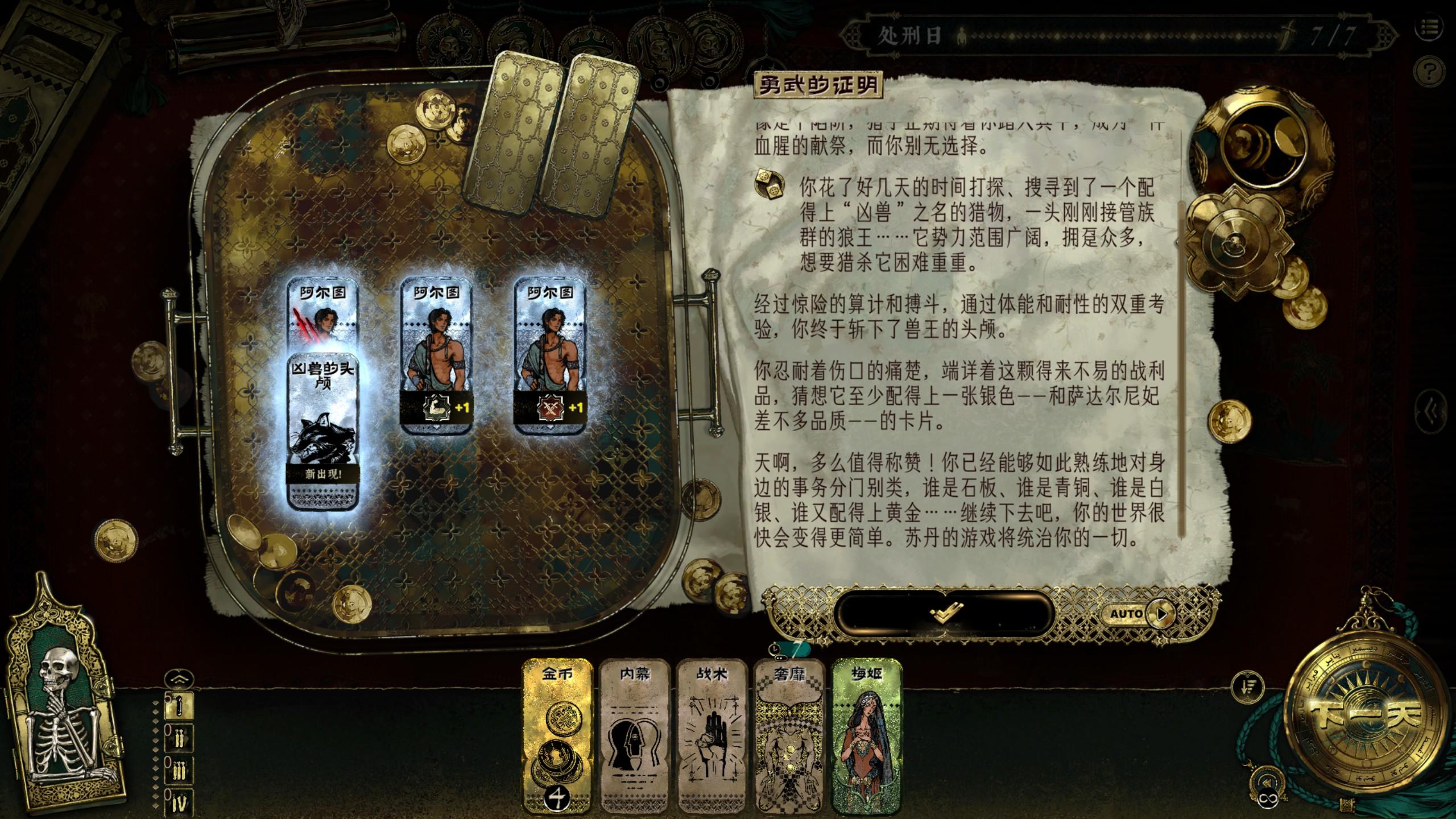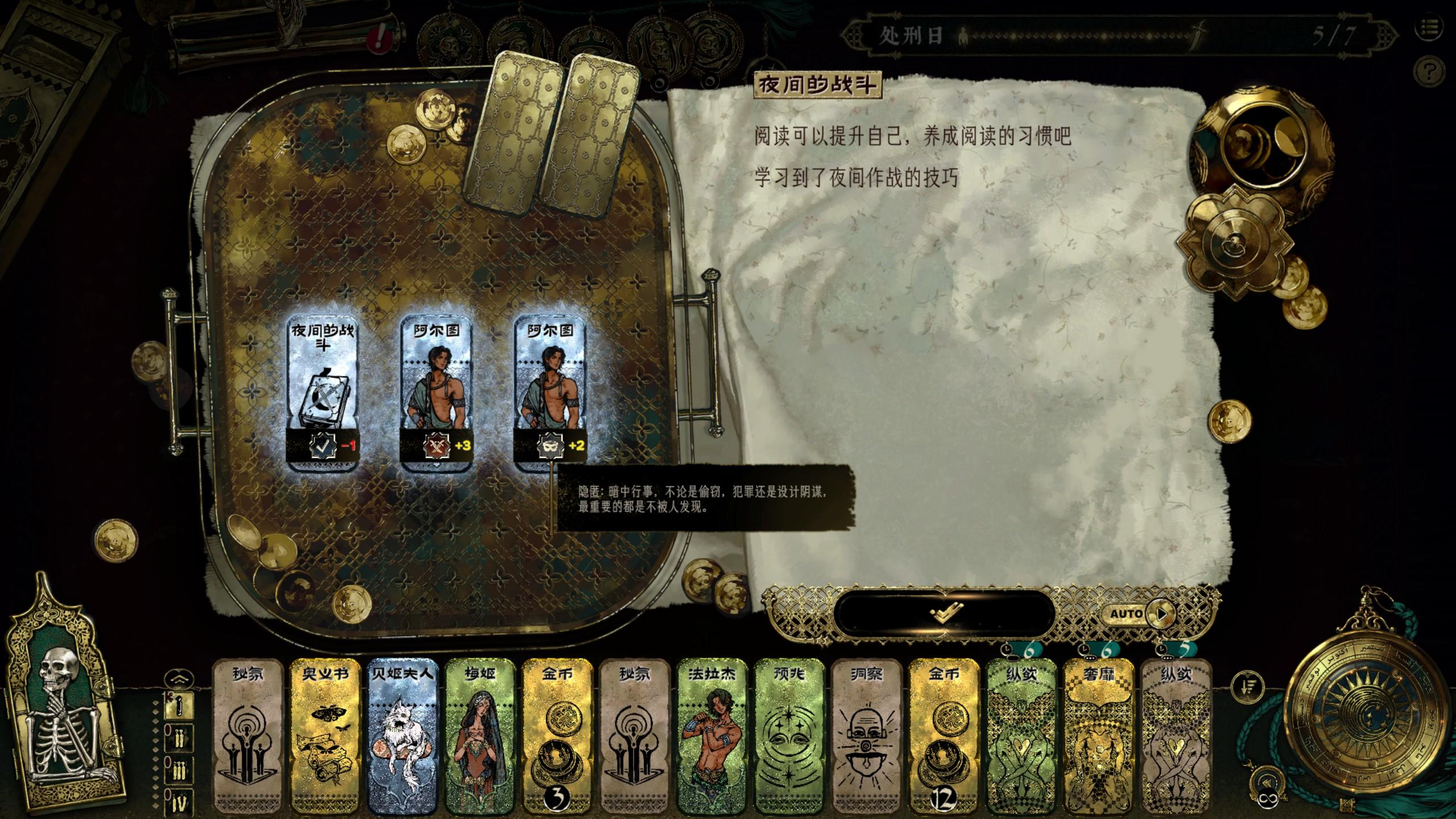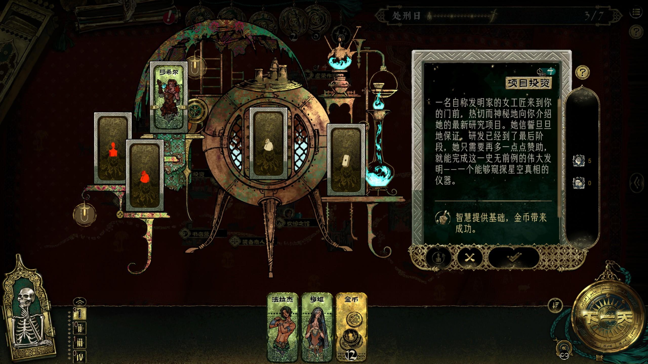 本作的事件倒有点杂乱无章,特别是后期能拿到的卡牌太多,甚至还需要分类,拿到的一些书籍以及道具可以放到俺寻思里面,这时候就能出现对应的事件以及用途,一部分的剧情都需要这个来推进。