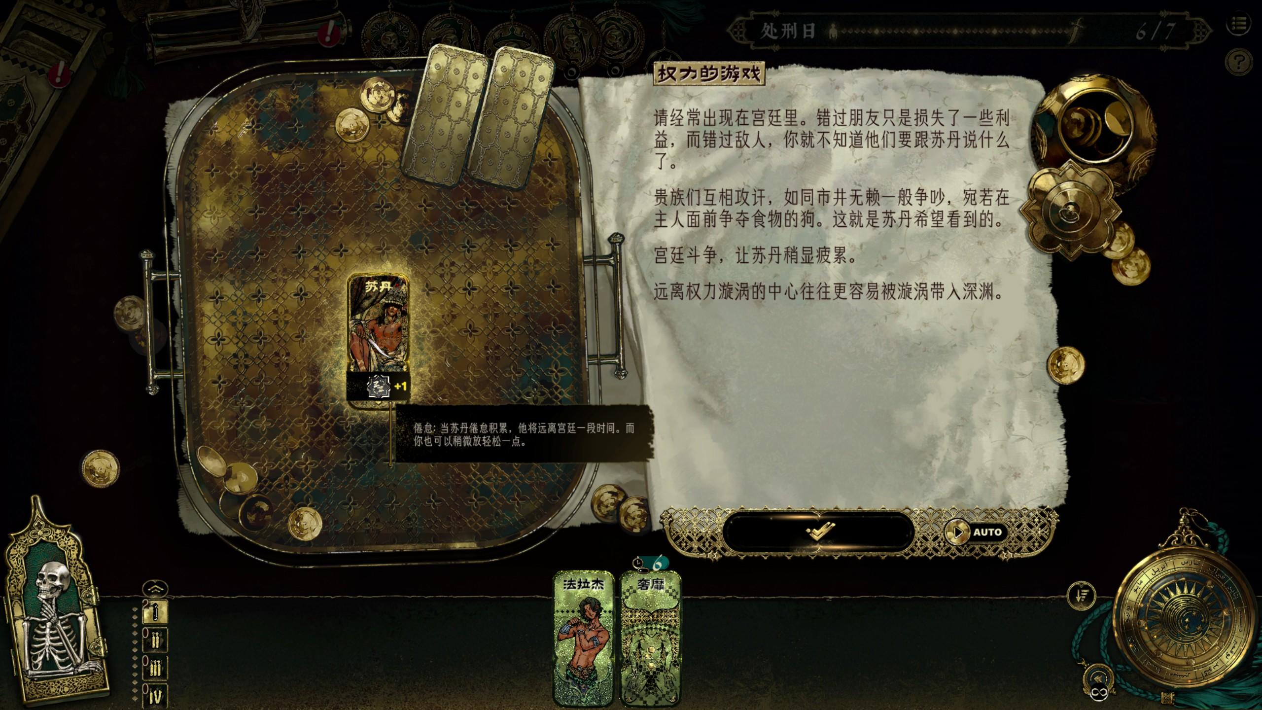 就比如说,笔者在前期拿到一个白银级的纵欲卡,没有相应的角色选择上朝对苏丹的妃子使用,却会收到一系列比较难的任务,其中一个是寻找黄金雕像,虽然给的时间够长,但是完全没有提示,就算遇到了异国商人,却还是买不到,所以前期还是不要随便用高等级的卡