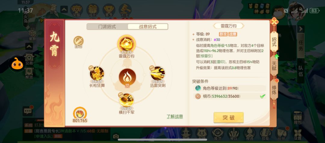 1雷霆万钧,秒4挂雷,经过这次小改个人觉得雷霆万钧算是加强了,理由是少了5点战意。洗过神通的都知道,高进度三澎湃有多难洗,减少了5点战意意味着我们可以带双澎湃+任意一个高进度的组合,又不妨碍我们起手战意技能,日常特别好用。