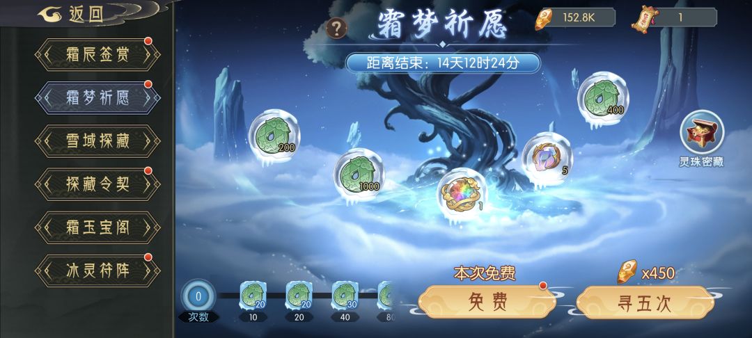 宝箱:打开可以获得祈愿符若干或者霜愿玉若干,每一层只有一个宝箱