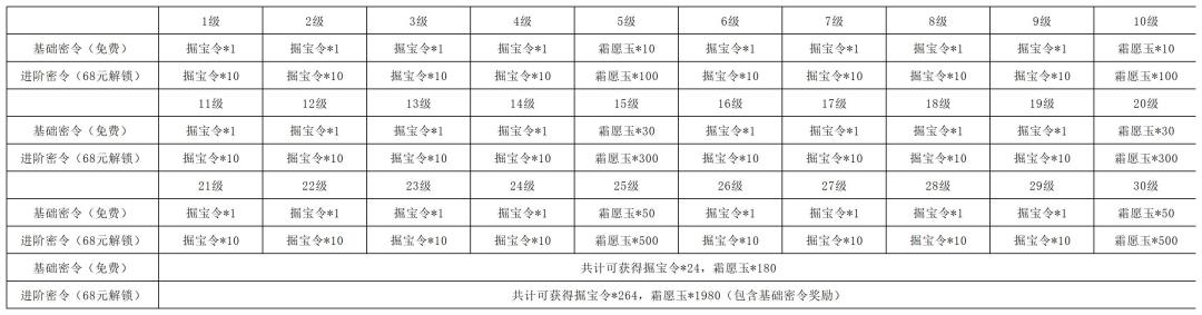 密令可以通过升级获得一些兑换材料霜愿玉和掘宝令,密令的升级上面已经介绍过,就不再赘述。