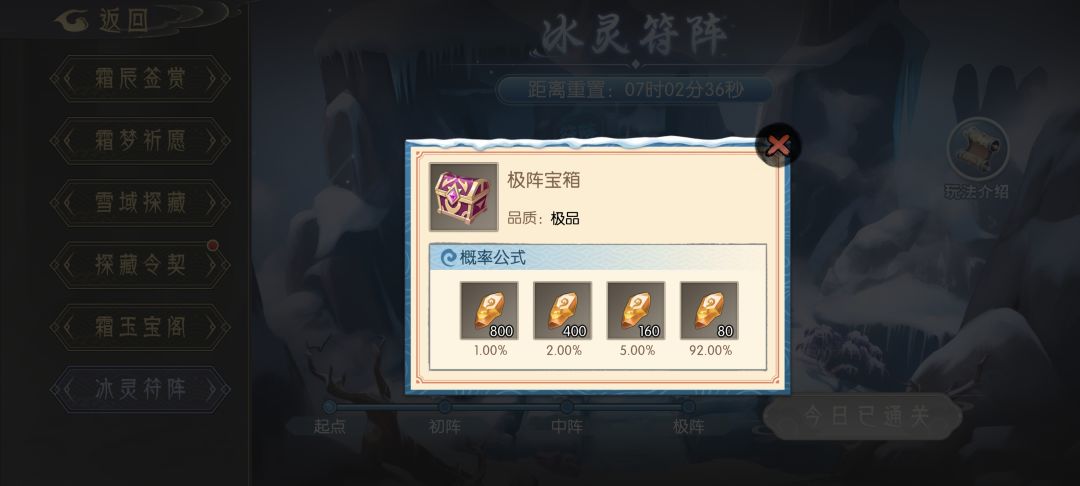 通关对应的阵即可获得宝箱奖励,都是灵髓,概率如下: