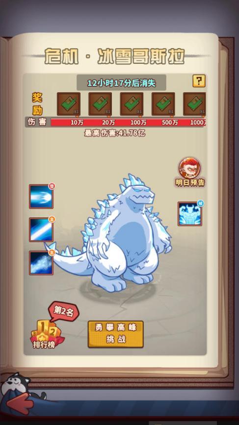 每天危机挑战中的boss都不同,各位大魔王可以提前预览boss技能,也能通过明日预告猜出次日的boss。留意boss技能,合理搭配阵容可以打出更高伤害哦。
