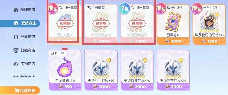 优先兑换,尽可能将商店里的神话召唤券买光。