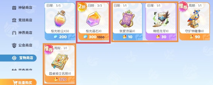 根据自己的需求考虑是否每日购买,如果玩家有很多神器需要进阶,对极光晶石的需求量大则推荐每日购买,反之则在有需求时购买。
