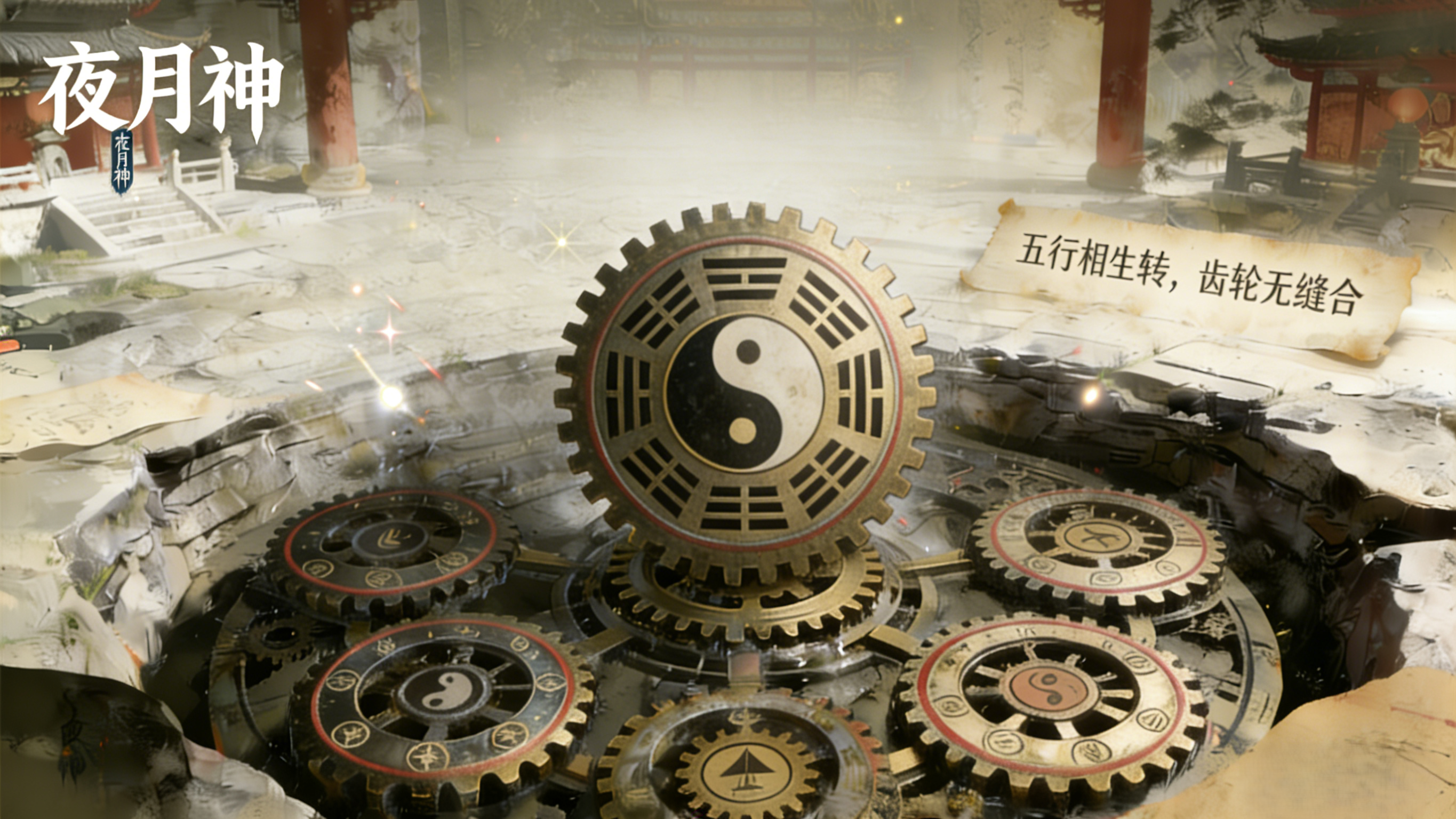 解谜规则:需按照 “木生火、火生土、土生金、金生水、水生木” 的顺序,滑动齿轮使相邻齿轮的相生符号对齐(如木齿轮的 “生火” 端对准火齿轮的 “受木” 端)。