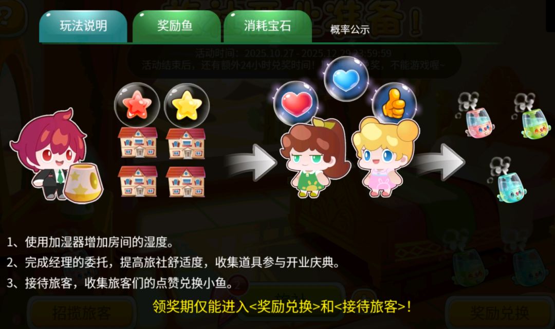 3、领奖日只关闭旅社环节,大家获取的道具要及时使用完毕;