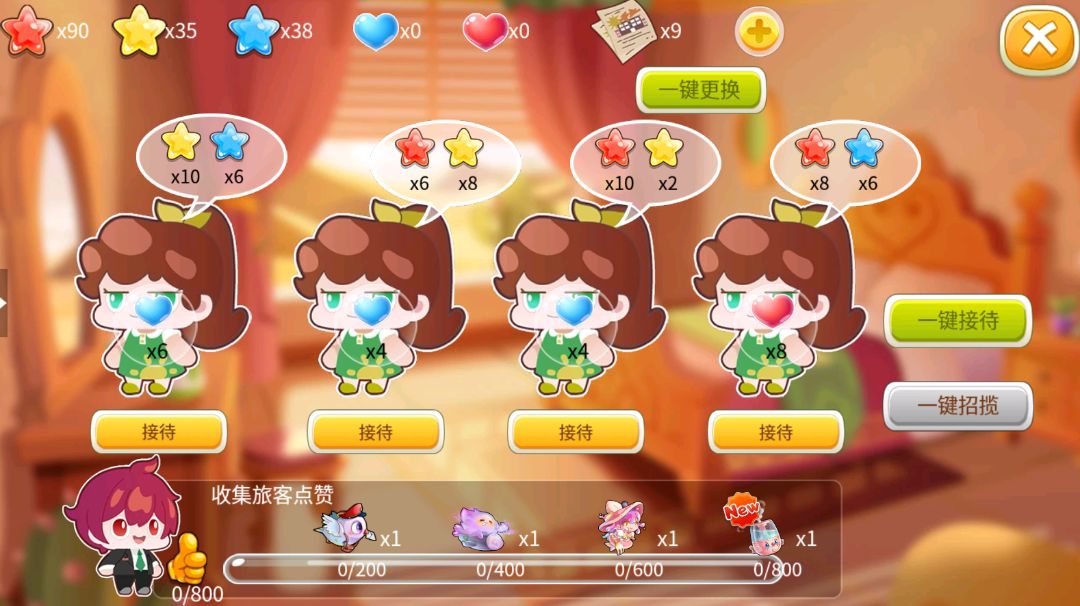 点击【接待】按钮完成接待客人的任务,注意【接待客人有等待时间】不要囤积道具哦!~