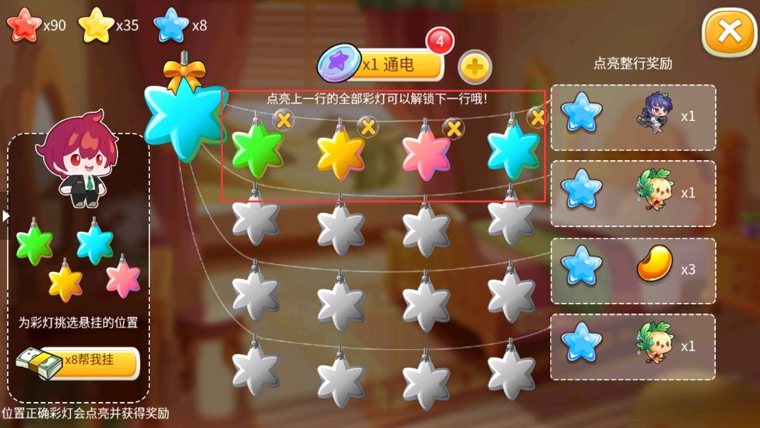 完成后点击通电按钮,收获彩色星星后进入【揽客】环节。