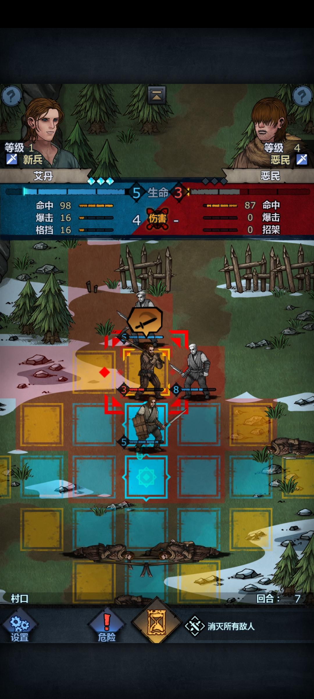 艾丹单挑就行,右下前两个敌人打完后艾丹还有6血以上才可能打过,后三个敌人一般都打你7血,最少可能打5血。实在打不过再上个丹尼尔。要注意不要一次被两个人打到就行,一个一个单挑。