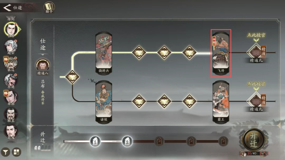 在仕途进位方面,建议明公首选【飞将】。可解锁技策【袭扰】【鬼哭神嚎】,技策鬼哭神嚎,能无视敌军防御,并附带驱散增益。不仅拥有较高爆发伤害,更具备大范围的群体打击能力,破局克敌的关键手段。