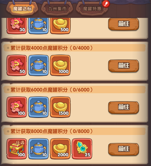 开启魔罐后不仅能获得武将、等级提升材料和元宝等道具,还会积累“魔气值”,不同品质的魔罐可增加的魔气值也会有所区别。当累积的魔气值达到一定数量时,主公可以获得额外魔罐奖励。