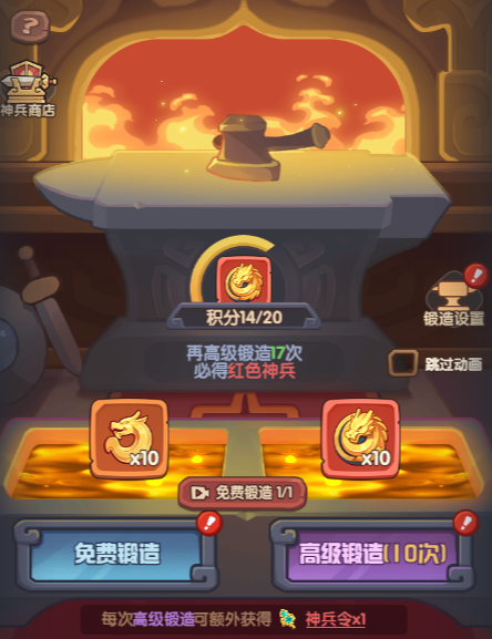 招募->神兵锻造