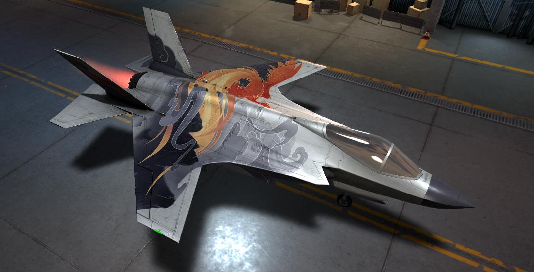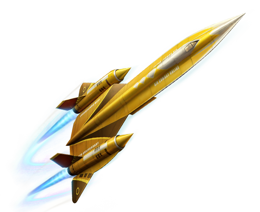 鎏金基底上,几缕银白线条如月光流淌,既中和了金色的厚重,又衬出机身凌厉的流线型轮廓 —— 像把岁月里的高光时刻,都凝在了这抹清透的亮白里。而机身上 “11 ANNIVERSARY” “AIR COMBAT ONLINE”的字样,像是给这段鎏金岁月盖下的纪念戳,藏着《现代空战 3D》十一年里的每一场热血对决。机翼与引擎处点缀的暗纹,像被风揉碎的金箔,既添了细节的精致感,又让整机带着 “历久弥新” 的质感 —— 鎏金裹着锋芒,银白载着回忆,这抹 “流金”,就是十年空战里最耀眼的那道尾迹。
