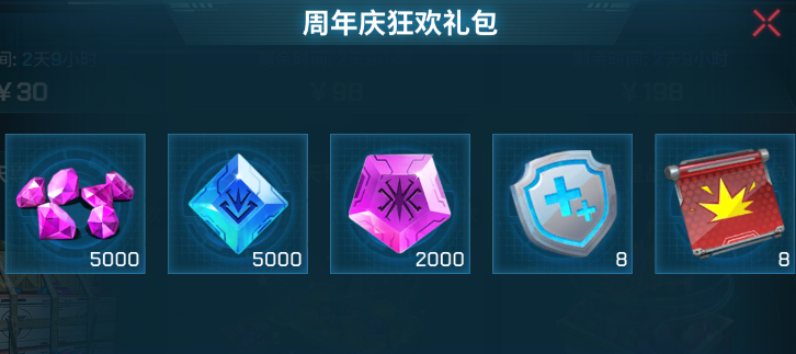 1、购买1次6元钻石礼包,领取[钻石]*60,(奖励限制次数:1次)2、购买1次30元钻石礼包,[钻石]*320,(奖励限制次数:1次)3、购买1次68元钻石礼包,[钻石]*640,(奖励限制次数:2次)4、购买1次128元钻石礼包,[钻石]*1200,(奖励限制次数:2次)5、购买1次328元钻石礼包,[钻石]*2500,(奖励限制次数:2次)6、购买1次648元钻石礼包,[钻石]*6000,(奖励限制次数:2次)
