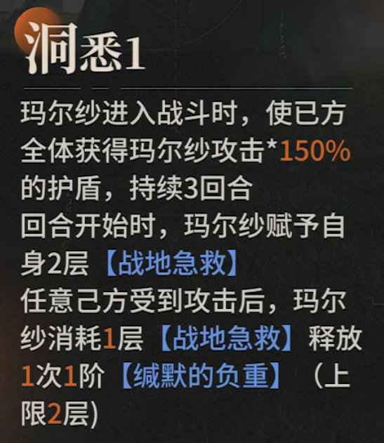 - 次选:漫长悄悄话:大幅提升攻击力,玛尔纱能轻松触发特效,叠满后盾量提升 12.5%,高压环境必备。