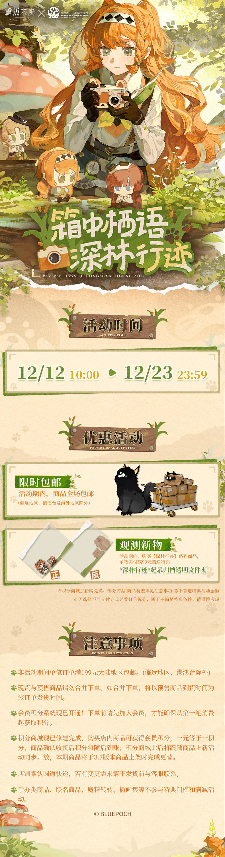 🎩:各位朋友,“深林行迹”系列商品将于12月12日10:00正式开启预售!更多商品信息、活动详情,请点击大图观看!