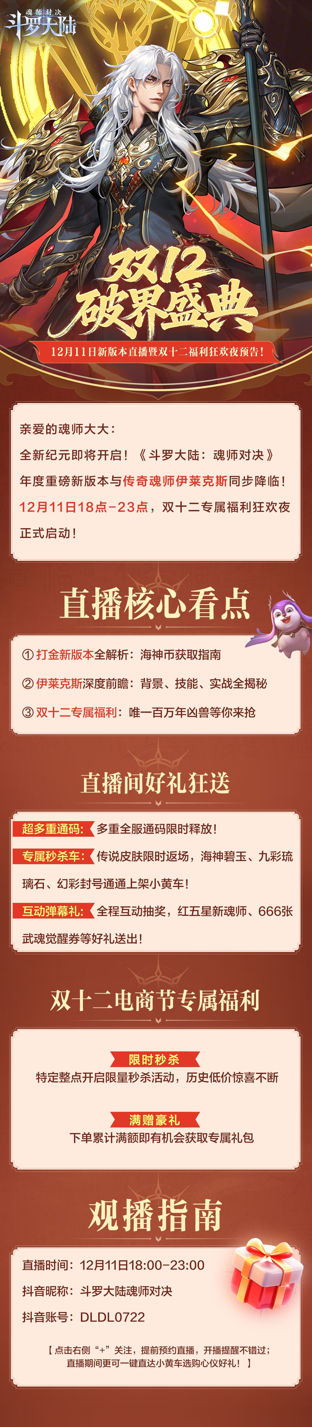 【双12破界盛典】12月11日新版本直播暨双十二福利狂欢夜预告!