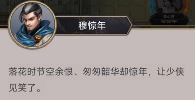 ,最后楚无敌被玩家击败(原文是倒下了,为江南除此大害)。就在玩家要逮捕花千牢的时候,穆惊年突然窜出(这个时候穆惊年应该还在十二连环坞未离开)眨眼间就把花千牢救走。随后众人前往武墓山庄问责。
