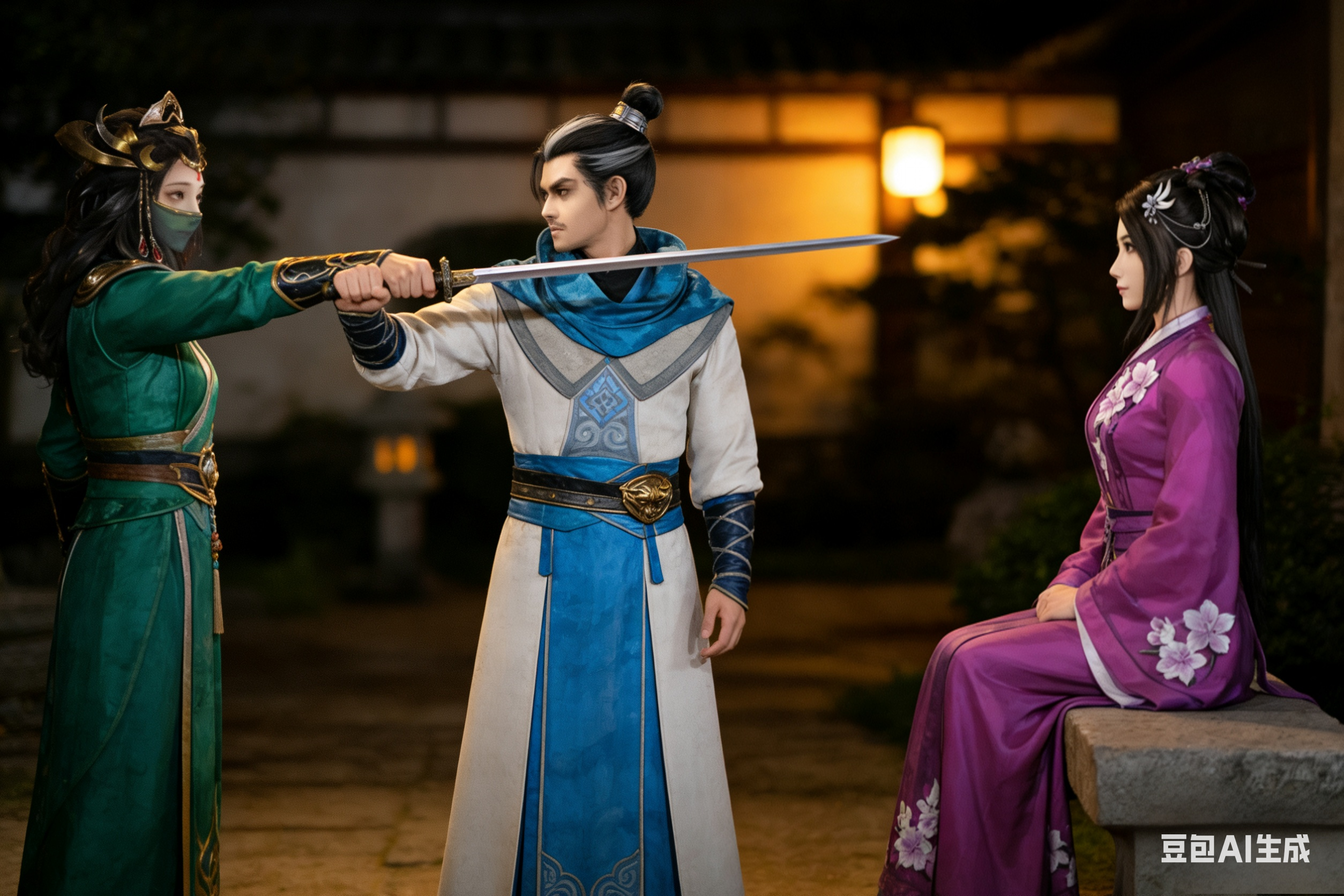 穆惊年带回花千牢之后(这个时候花千牢肯定是内心活动最复杂的时候,最爱的人害了她全家如今又救了她,判定其状态应该是心如死灰,为后续自尽做铺垫),庄主夫人见状持剑上前质问,穆惊年为花千牢挡剑,夫人奔溃离开。