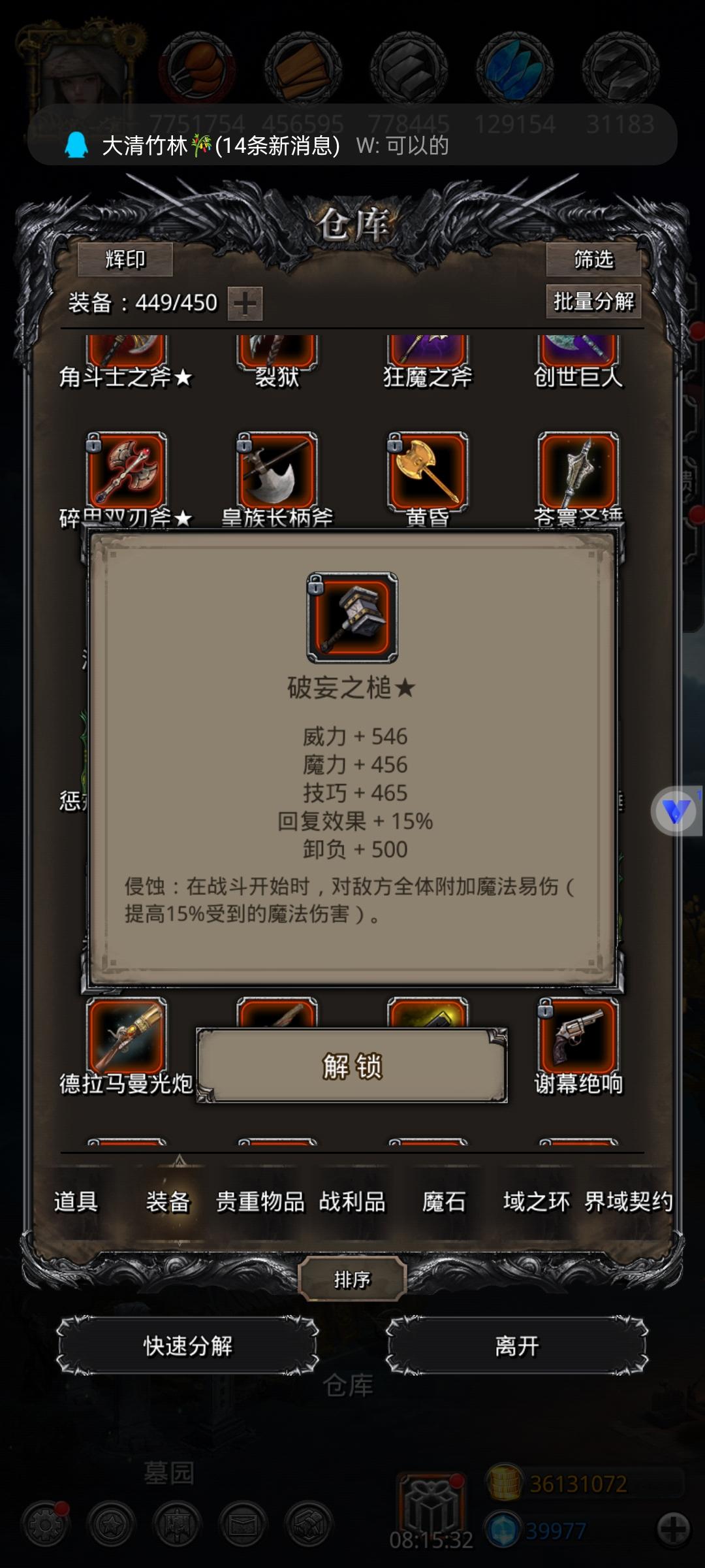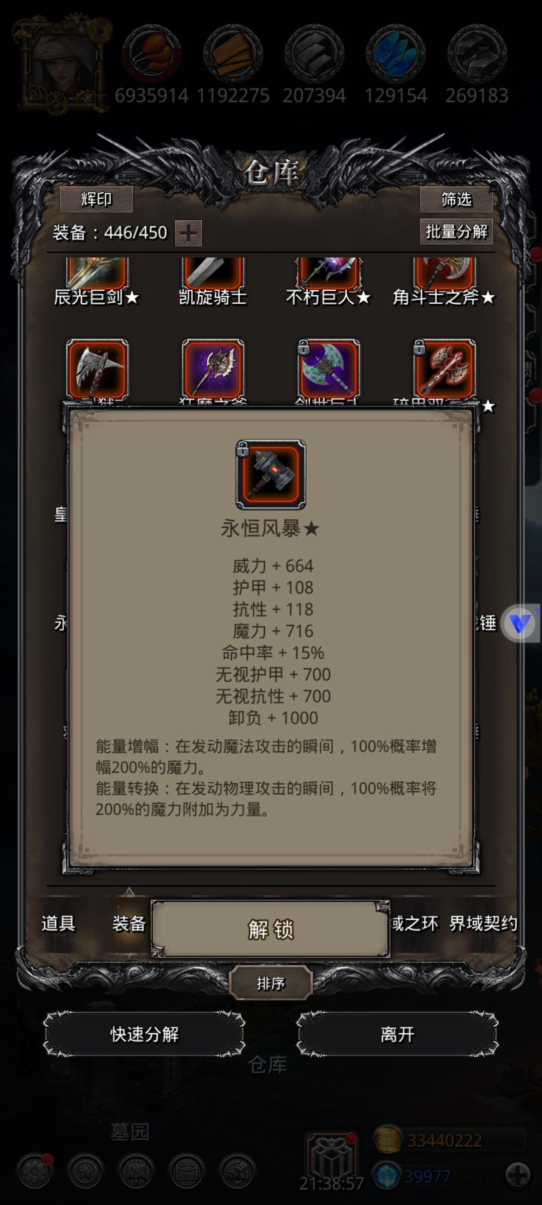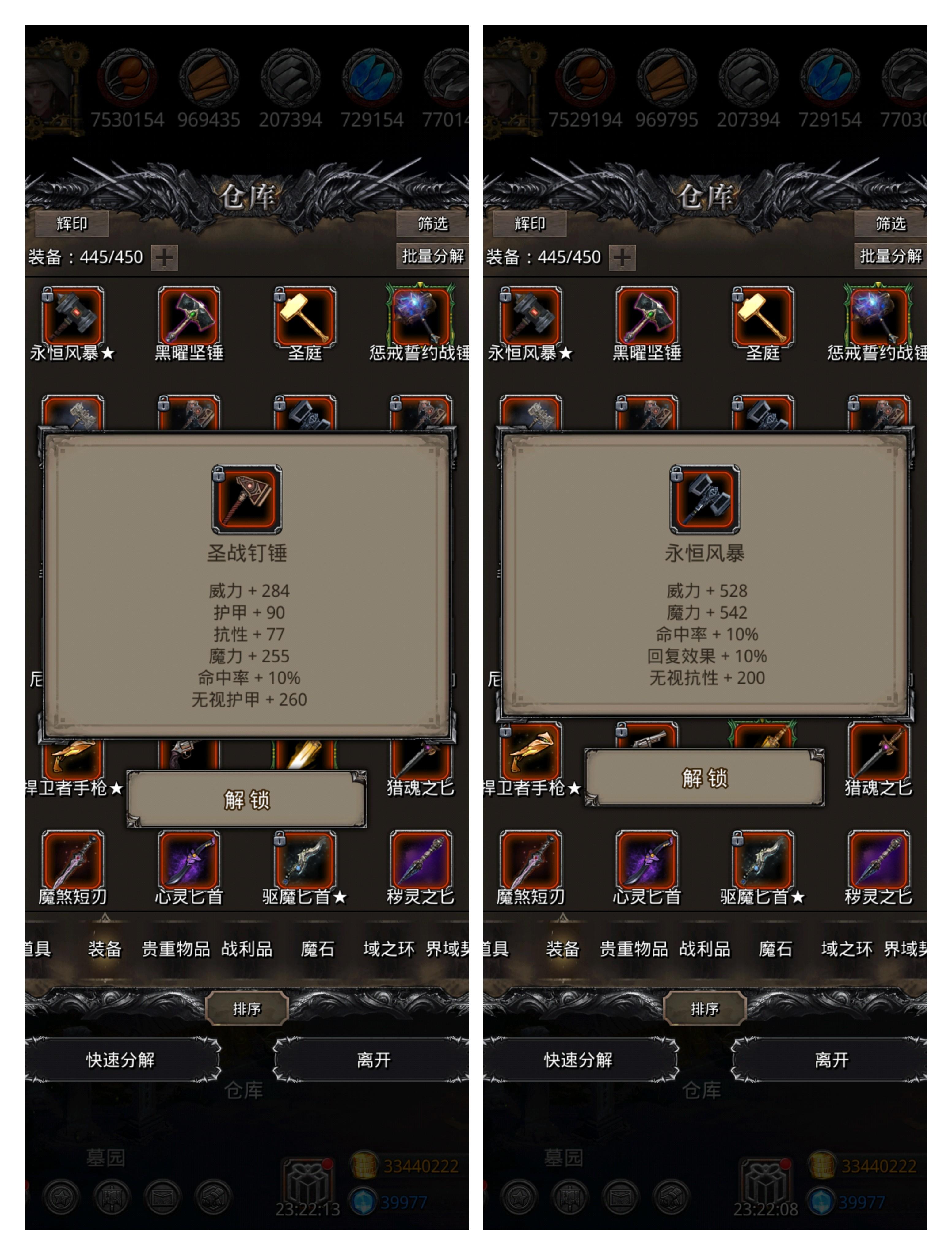 如果打残骸或者影兽要做纯魔命中锤子,忽略风暴锤即可