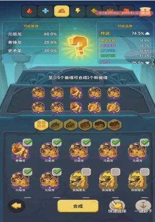 。而且1远古+4史诗合成时有0.1%-0.9%概率直接合成出一个超凡兽魂!!!!运气好的话,直接出一个超凡就省大了!不断重复1+4去刷远古兽魂天赋数量和品质,刷到3天赋就可以戴上或者锁起来放着了(刷到两条远古天赋的就太棒了)。重复召唤、合成、刷天赋操作,直到拿到10个好属性的远古然后去合成,对自己没信心就堆到100%概率合成超凡,有信心就随意搞。7