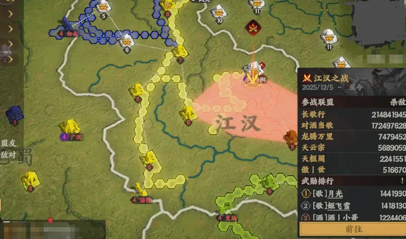 12月9日,【一统天下】干扰【久幺会所】修建烽火台,由于【久幺会所】此前在江汉对抗中失利,部分人员已整合至【江山藏龙】,导致其在与【一统天下】的对抗中处于下风。