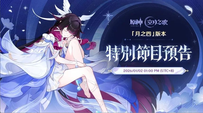 米哈游旗下热门开放世界游戏《原神》官宣,「月之四」版本前瞻特别节目将于2026年1月2日(周五)13:00正式开启。此次节目将实现多渠道同步直播,除「原神☆FES」现场主舞台外,场馆内其他直播区域也将实时转播,方便现场及线上玩家共同关注。