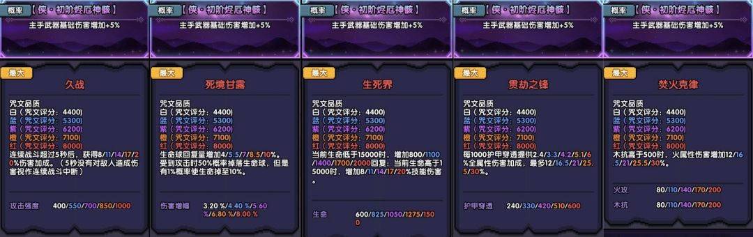 三把魂契武器提供的属性一模一样,不一定非要按推荐的带,实在不行做了哪俩把就带哪俩把,木最好放在二号位,在二号位时可以大范围给敌方施加DEBUFF。