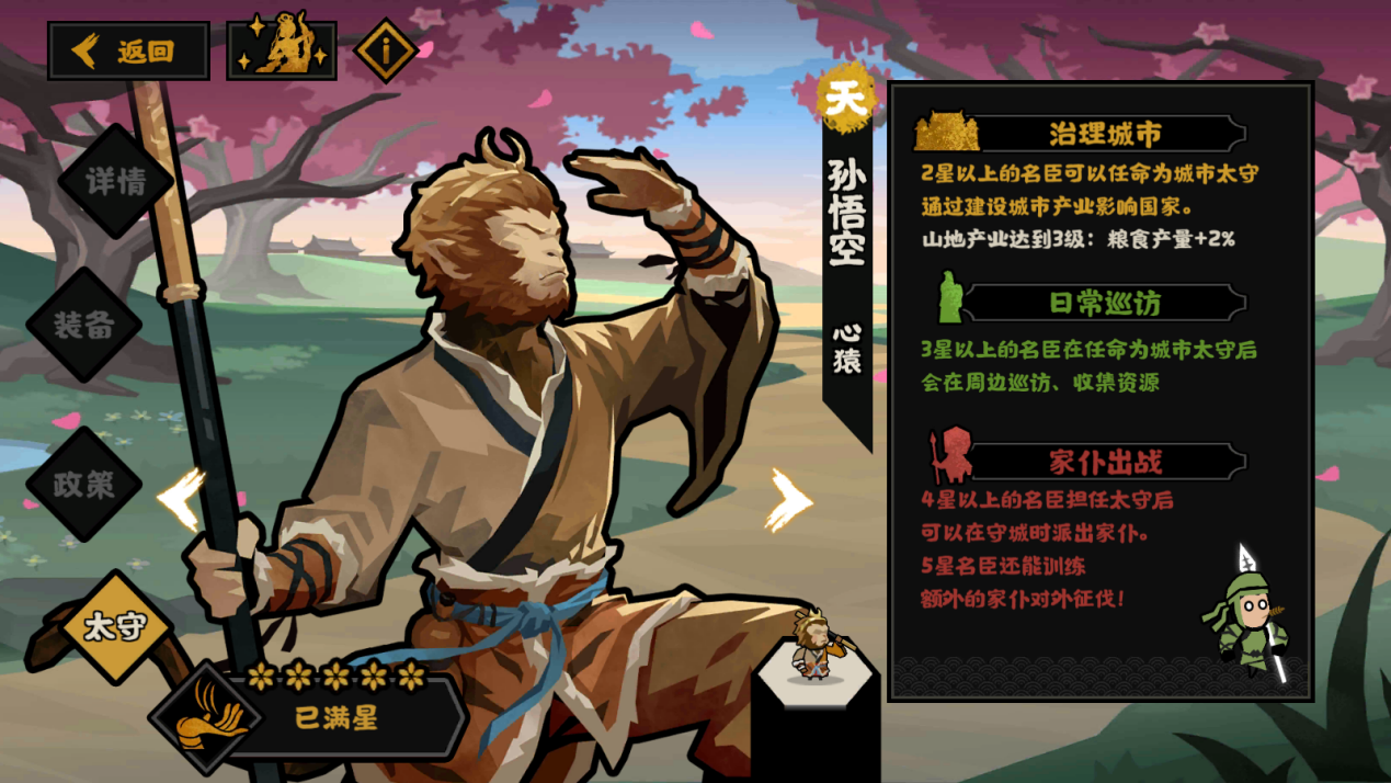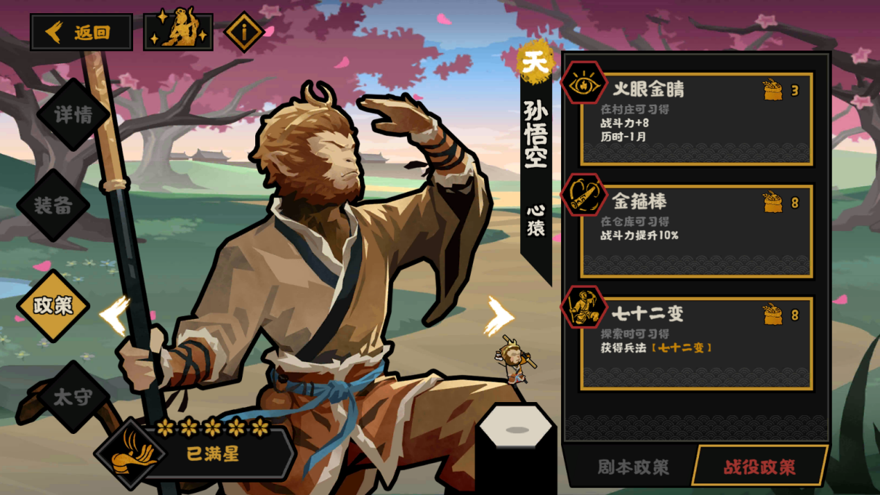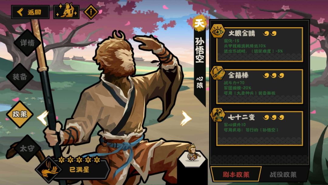 政策的缺点在于:孙悟空本体仅有火属性争道,不太适配这个武将技,如果有林系列争道兵器配合会更有发挥一些~