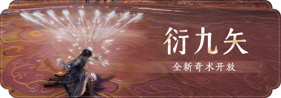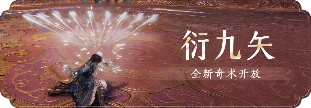 本周,全新奇术「衍九矢」即将问世,兼具群体输出与控制之能,助诸位游侠从容制胜。本周更新后,还有奇术特效【引千机】,以及「九曲惊神枪」武学特效【飞霜点雪】上线!
