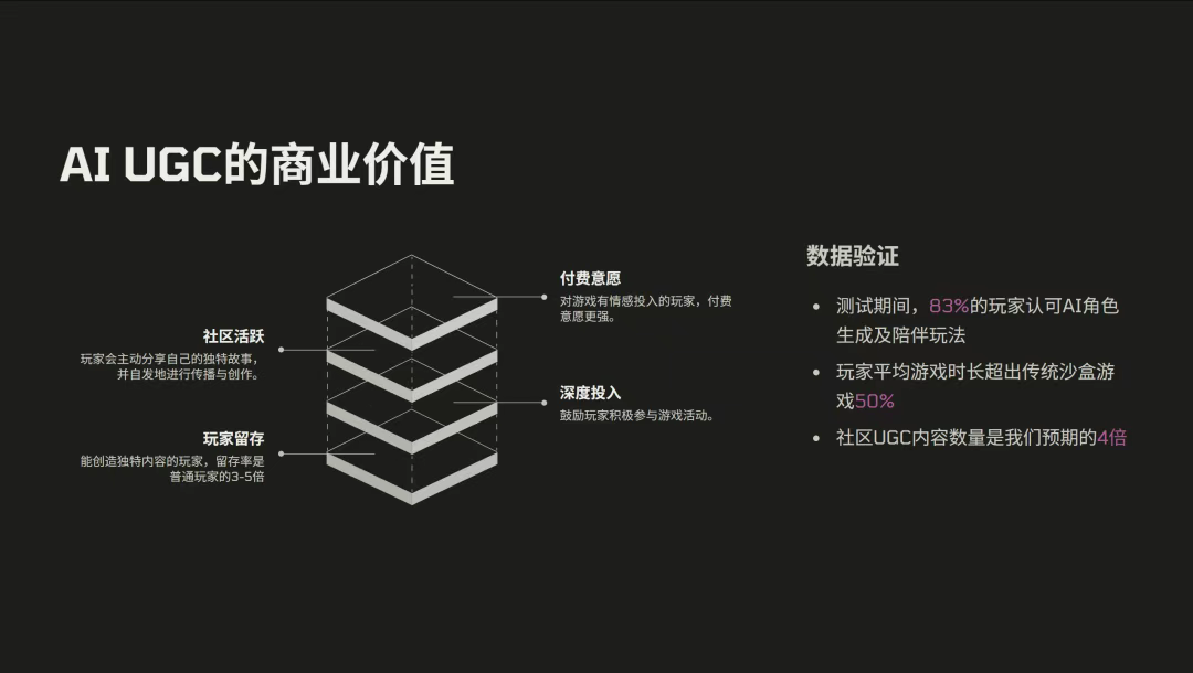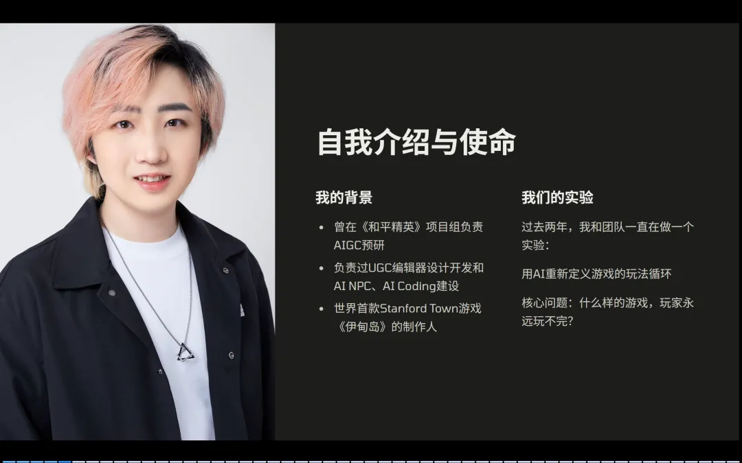 现在我可以说,没有任何一支团队,在AI游戏的玩法侧探索得比我们深——比如我们做的AI任务生成和玩法生成,行业里现在仅此一家,其他团队能做到叙事生成就不错了。