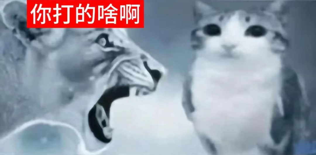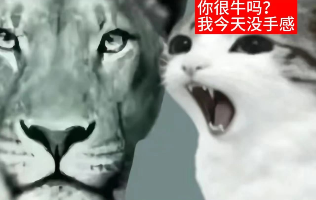回到国内,猫头鹰小猫的走红,则是因为另一位博主@鲫鱼。他翻出这张上古梗图后,将它与此前流行的狮子吼苹果的表情包梗图凑在了一起,变成了下面这张狮子吼猫的全新版本。