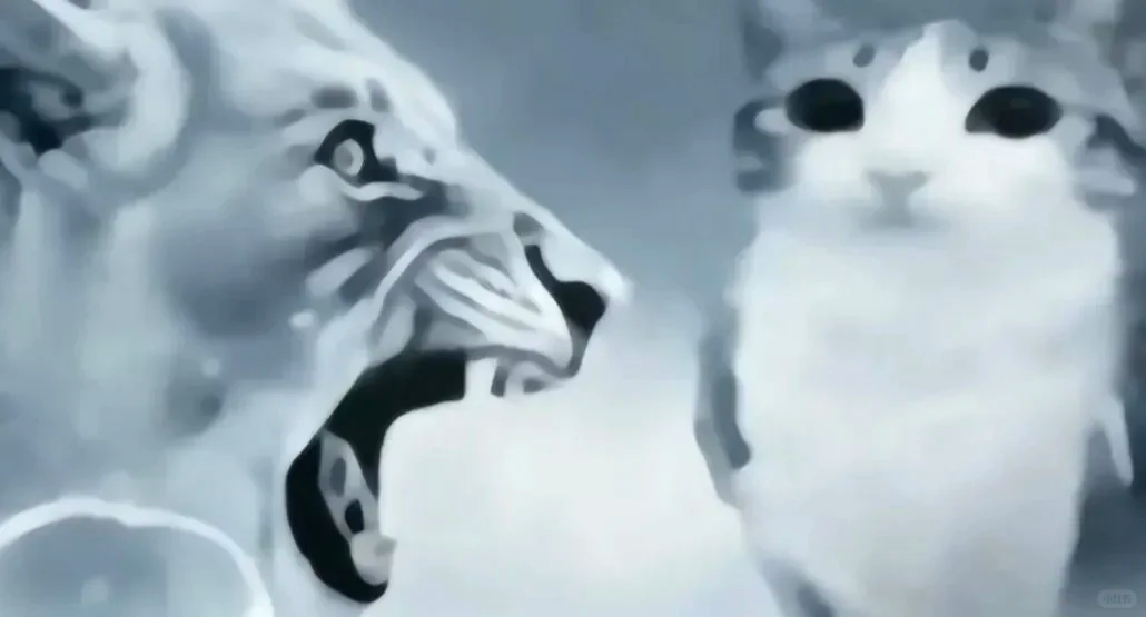 在@鲫鱼最早制作的视频里,狮子和小猫相约打游戏。结果小猫发挥失常,狮子扭头零帧起手怒斥小猫:“你打的啥啊”。小猫则反驳道:“你很牛吗,我今天没手感”。听到这,狮子选择了道歉:“兄弟我错了”,并凑近亲吻小猫。