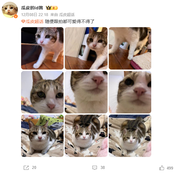 而这只充当了脸模的小猫,则是博主@瓜皮的id酱所养的小猫,瓜皮。