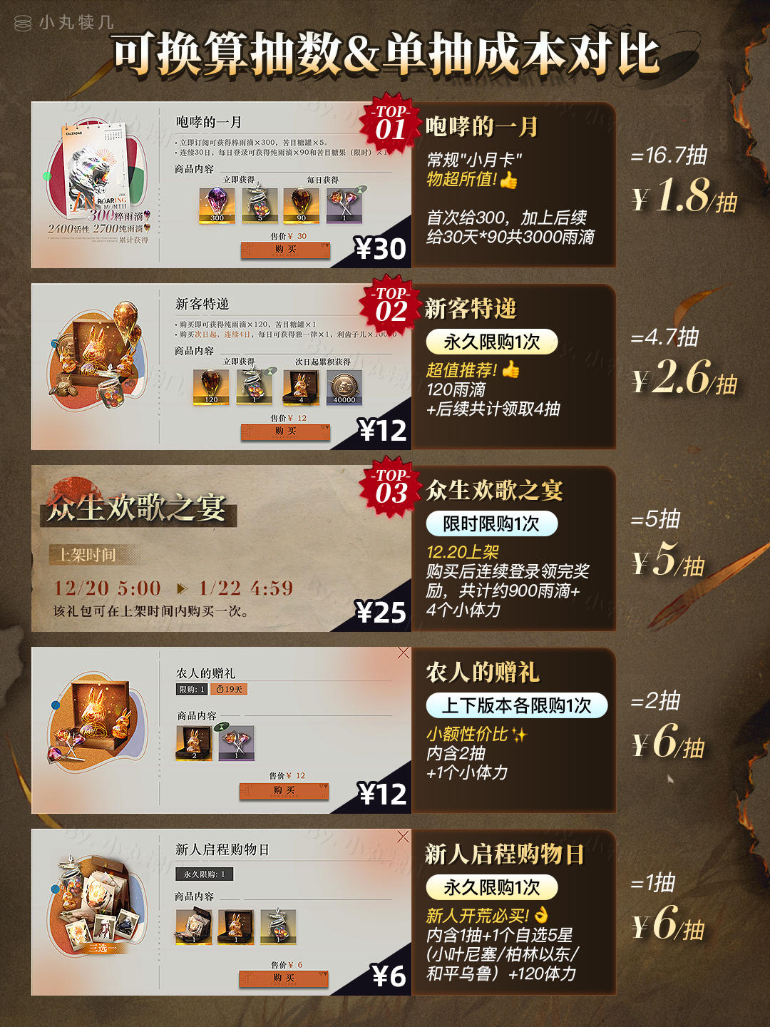 V3.3版本丨💰氪金礼包单抽性价比大汇总