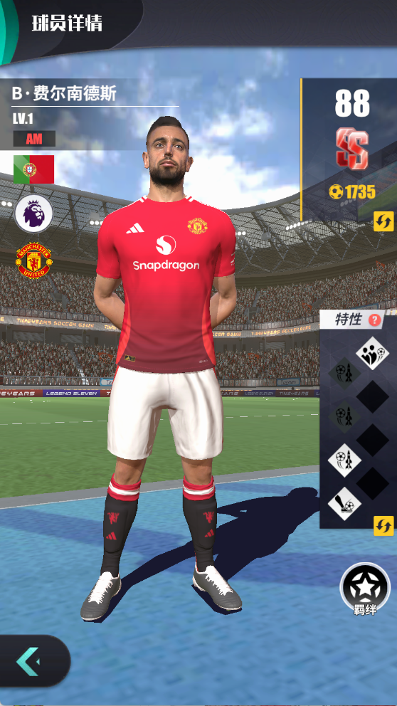 下面给玩家带来几个游戏中曼联球员的球员简单介绍:首先是C罗。在游戏中评分为88分,其球员特性包括:抗压控球,伺机而动,鬼魅切位等特性。抗压控球是指球员降低重心构筑三角护球区,通过身体卡位与初秋频率控制形成绝对保护区,控球成功率提高1.0%。伺机而动是指通过保守传控消耗对手耐心,提升诱敌深入后的反向直塞球质量。比分非领先时,传球与控球属性提高3.0%。