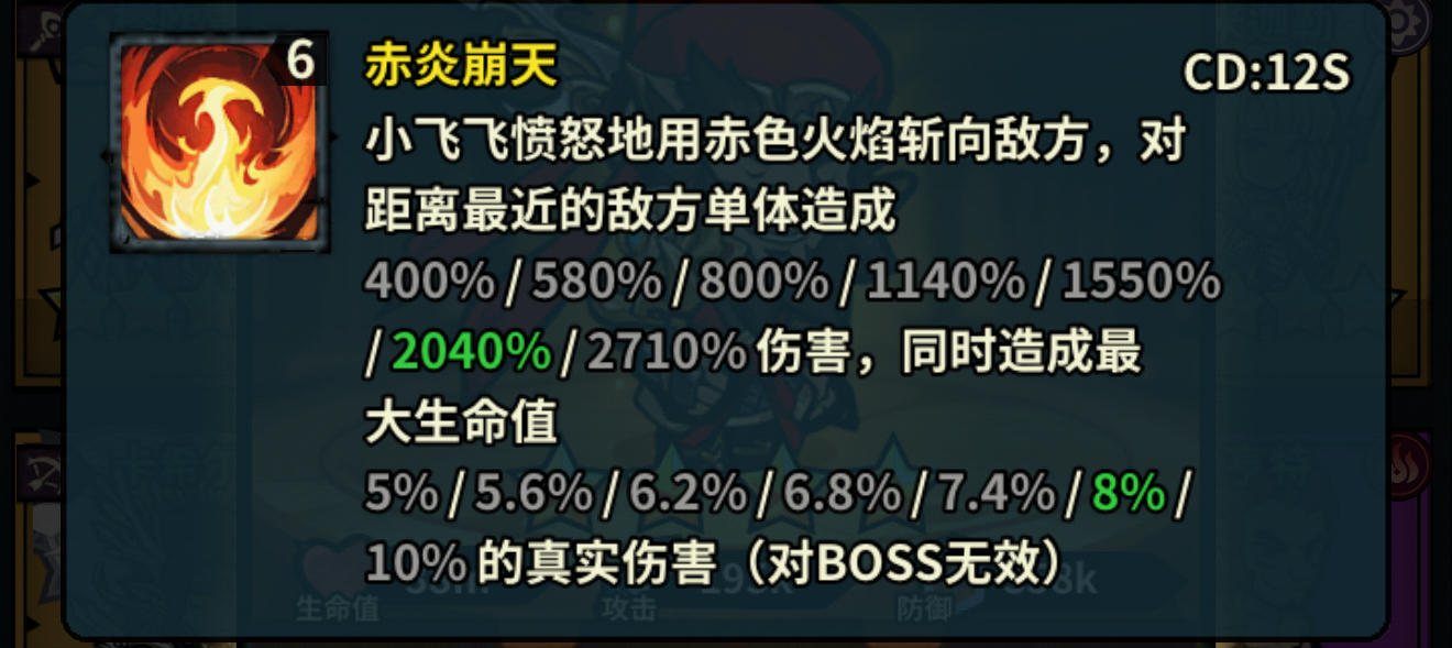 小飞飞初始攻速增加40%,且使用[赤炎崩天]命中后对敌方造成眩晕(对 BOSS无效)