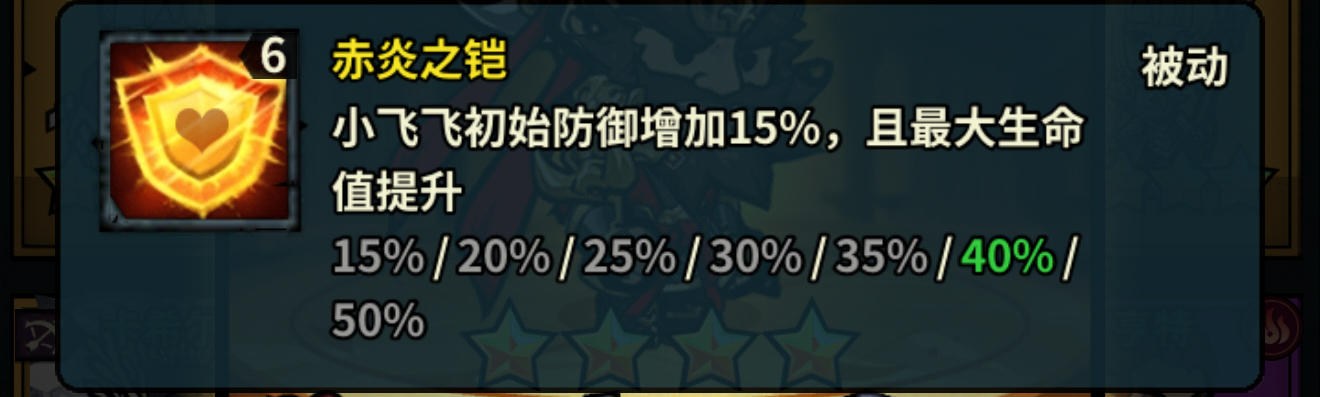 - 补充性的第2个被动,增补了防御和血量,但是嘛,数值依旧和早期英雄相比,略低