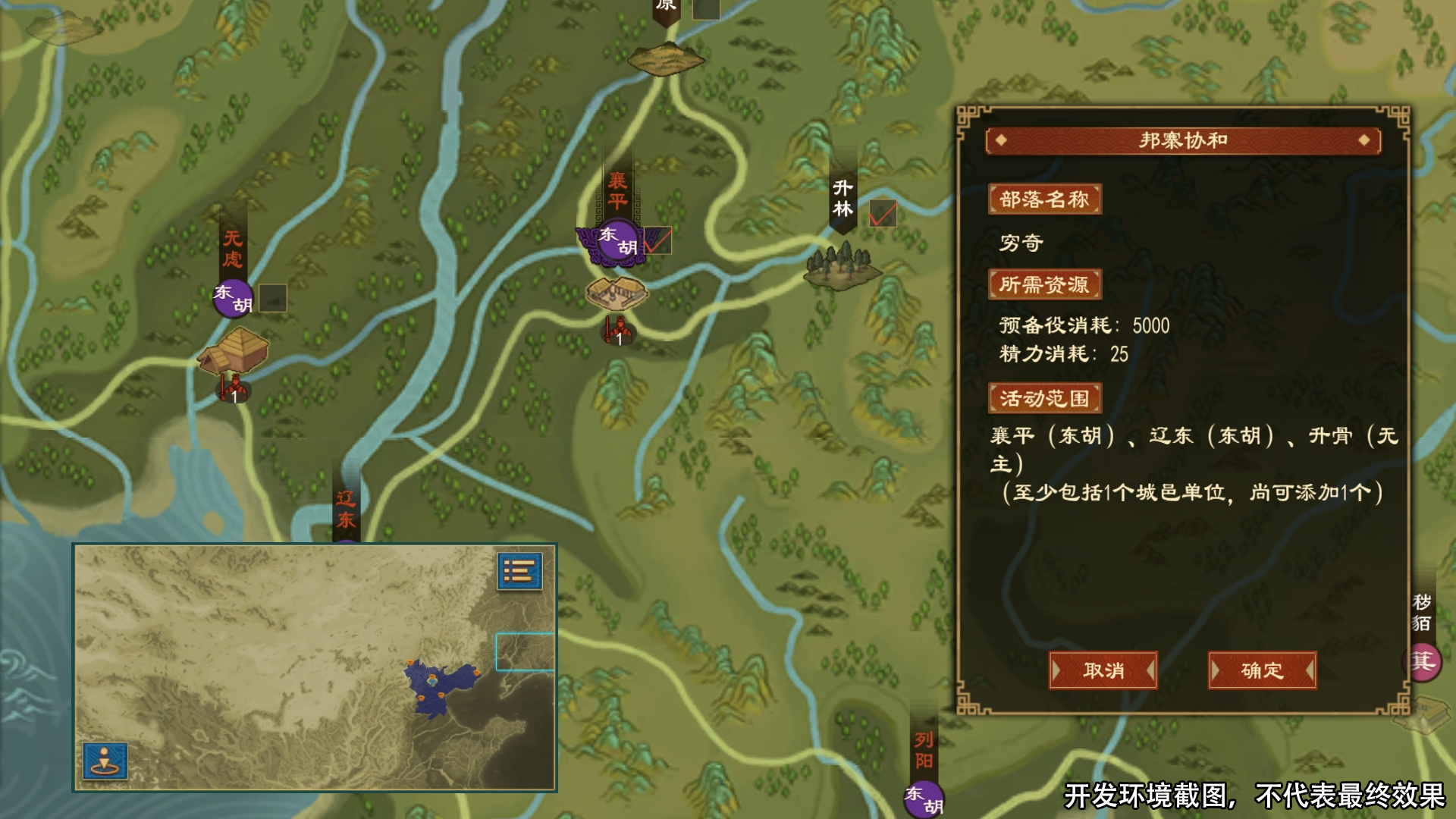 盟邦谍候:当存在我方向交好的部落活动范围的势力派遣细作时,触发该事件后可以使我方在该势力的情报网进度直接达到100%。