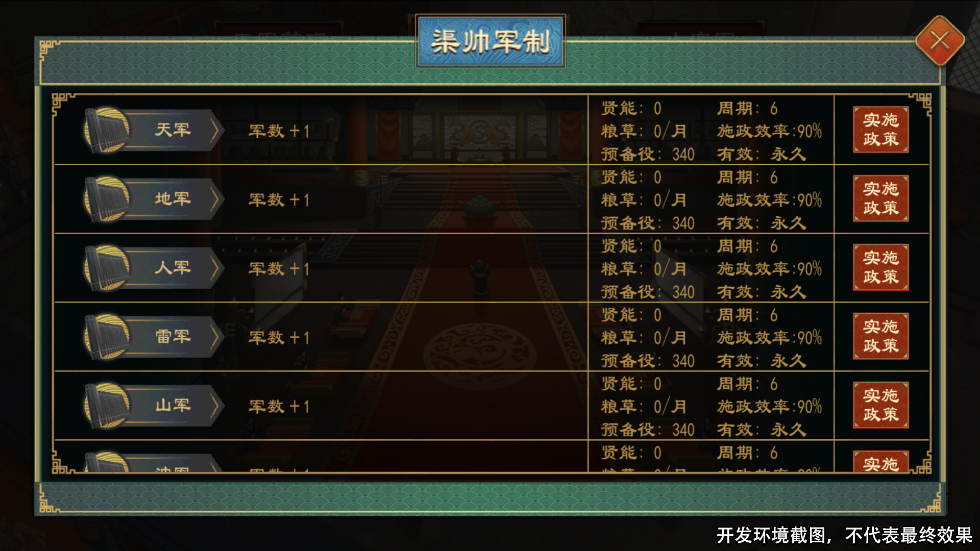割据势力拥有专属的 “帷幄官制”,各职位可以影响军队的士气、纪律、生还率、行军速度等。